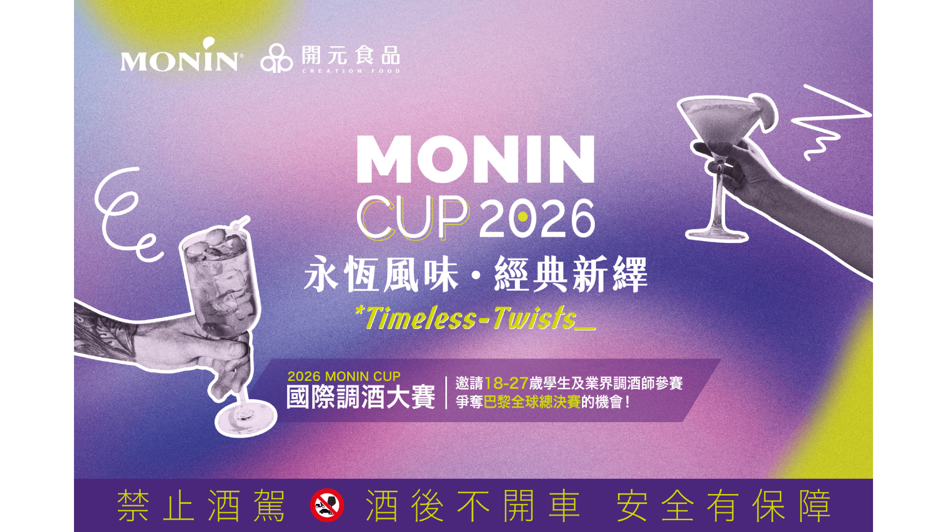 台灣酒吧文化持續蓬勃發展,調酒師成為餐飲產業的重要競爭力。法國百年風味糖漿品牌MONIN與開元食品共同舉辦的「2026 MONIN CUP 國際調酒大賽」,今年正式啟動台灣區賽事,邀請全台年輕調酒菁英以創意視角重新詮釋經典雞尾酒,展現新世代調酒文化的多元樣貌。