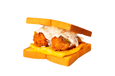 套餐價99元 金黃酥脆薯餅佐濃郁甜蒜醬夾入香甜奶油吐司中,蒜香與奶油香在口口中完美融合,為早晨活力加分!
