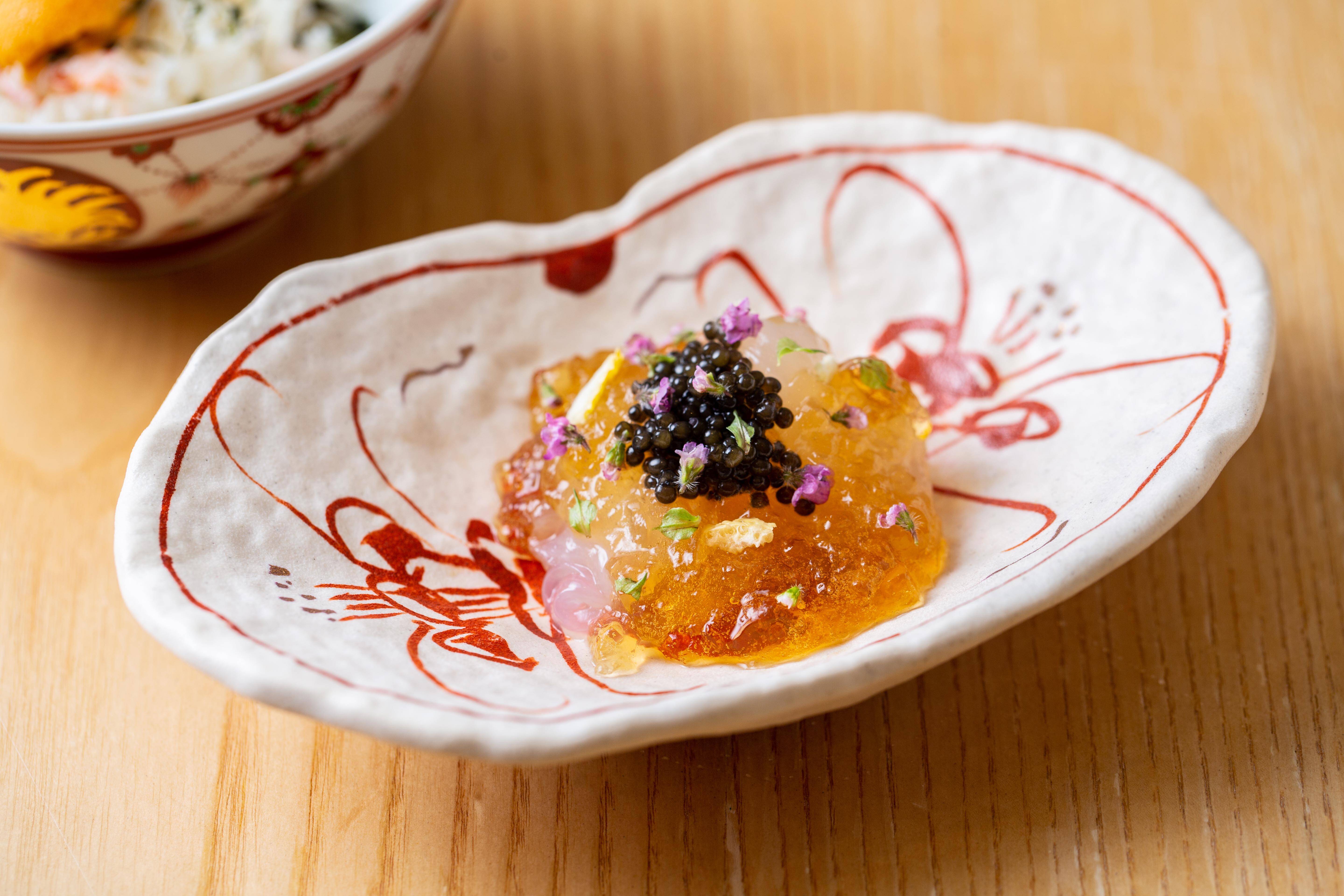 – 雪蟹塔塔、魚湯凍及貝魯迦魚子醬