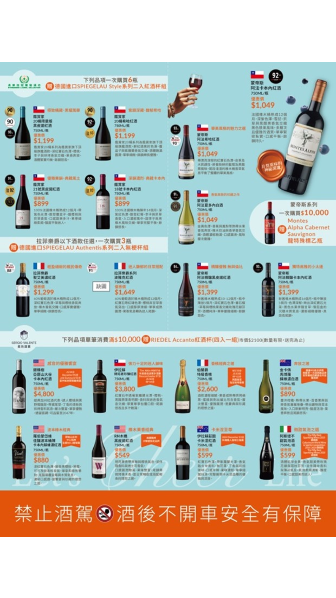 產區來自義大利/智利/法國/英國進口好酒,跳脫M型趨勢再現中價經典風華