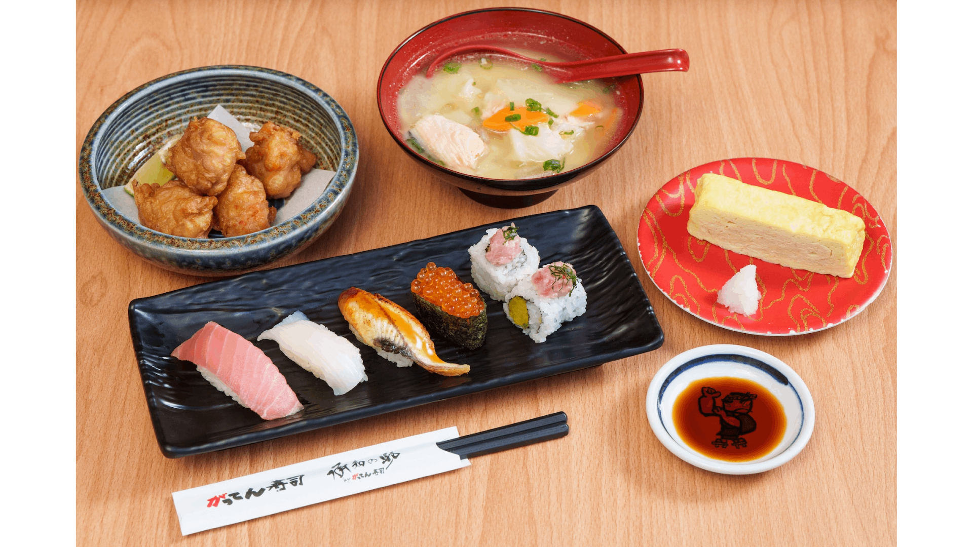本次「總料理長私房特選套餐」套餐由以超過 35 年的壽司職人生涯的台灣總料理長,親自組合出最能反映日本壽司食序邏輯的組合,內容包括五貫壽司:黑鮪魚中腹、槍烏賊、鰻魚、鮭魚卵軍艦、鮪魚泥花卷,加上唐揚雞與玉子燒,並提供 Highball 或味噌湯、可樂三擇一,原價 638 元,活動期間特價 520 元,期待台灣饕客能藉由料理長精心搭配的組合,到合點壽司品味職人手藝與餐酒搭精神。