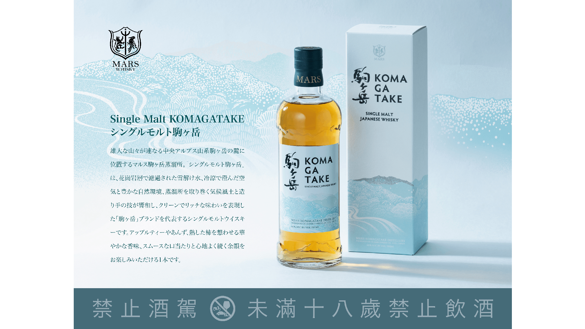 駒之岳蒸溜所MARS Komagatake Distillery)坐落於中央阿爾卑斯山系「木曾駒岳」山麓,四周環繞壯麗山林與清澈溪水,這片冷涼而明亮的自然環境,為威士忌的熟成提供了理想條件,使原酒得以在靜謐的時光中緩緩呼吸、成熟,孕育出層次豐富和風格多樣的風味。