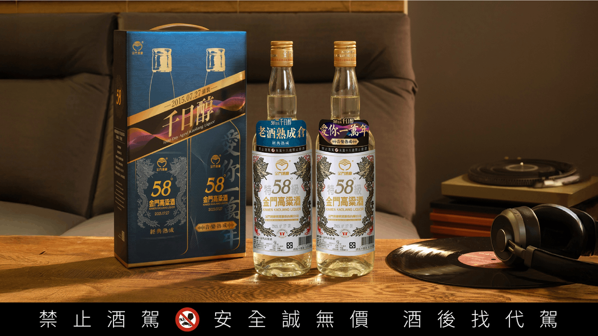 全台首款以情歌熟成的高粱酒,不單只有聽搖滾情歌的浪漫意象,更是可以被驗證音樂熟成能帶來酒感變化的產品!「58金高千日醇音樂熟成品鑑組」內含兩瓶於「2015年7月27日」罐裝、陳放超過十年的千日醇老酒,一瓶是在標準熟成環境下靜置成長、另一瓶則是在情歌相伴下完成熟成,這樣「對照式」的品鑑設計,貼心之處就在於讓酒饕能細細品味,並進一步比較、驗證,感受經過音樂洗禮的酒液所帶來的風味及口感變化的樂趣。在經過百位酒類專家盲測品飲後,均認為在同樣擁有十年老酒醇香、麴醬香的千日醇底蘊基礎之下,情歌熟成後的酒液確實展現出不一樣的風味層次,賦予了千日醇老酒溫醇甘潤的口感。