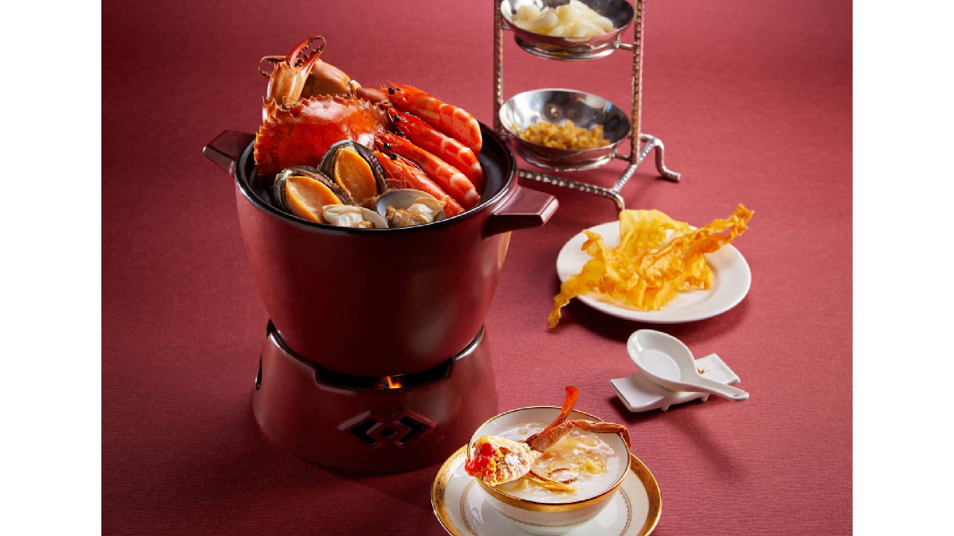 圖說:圓山大飯店將於10月28日首度正式推出金龍餐廳宵夜場,營業時間為21:30至23:30,隨時品嚐五星級主廚精心打造的豪華宵夜。圖為:潮州蝦兵蟹將砂鍋粥。圖/圓山大飯店提供