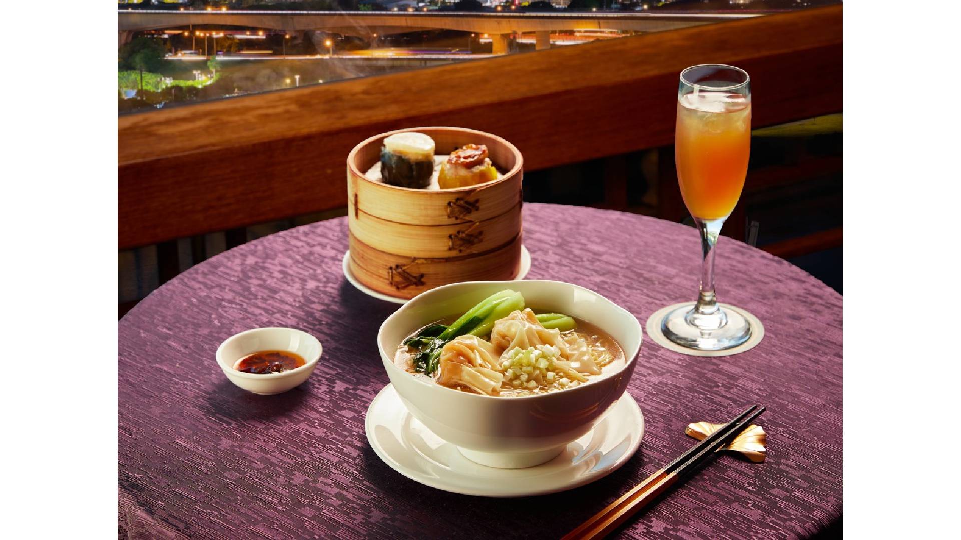 圖說:金龍餐廳首度攜手覓到by吧沐酒吧共推兩款限定特調套餐,搭配蟹粉龍皇雲吞麵或至尊三寶牛肉麵,以細膩湯底與層次口感呼應酒香的節奏,溫熱每一位夜歸旅人的心與胃。圖/圓山大飯店提供