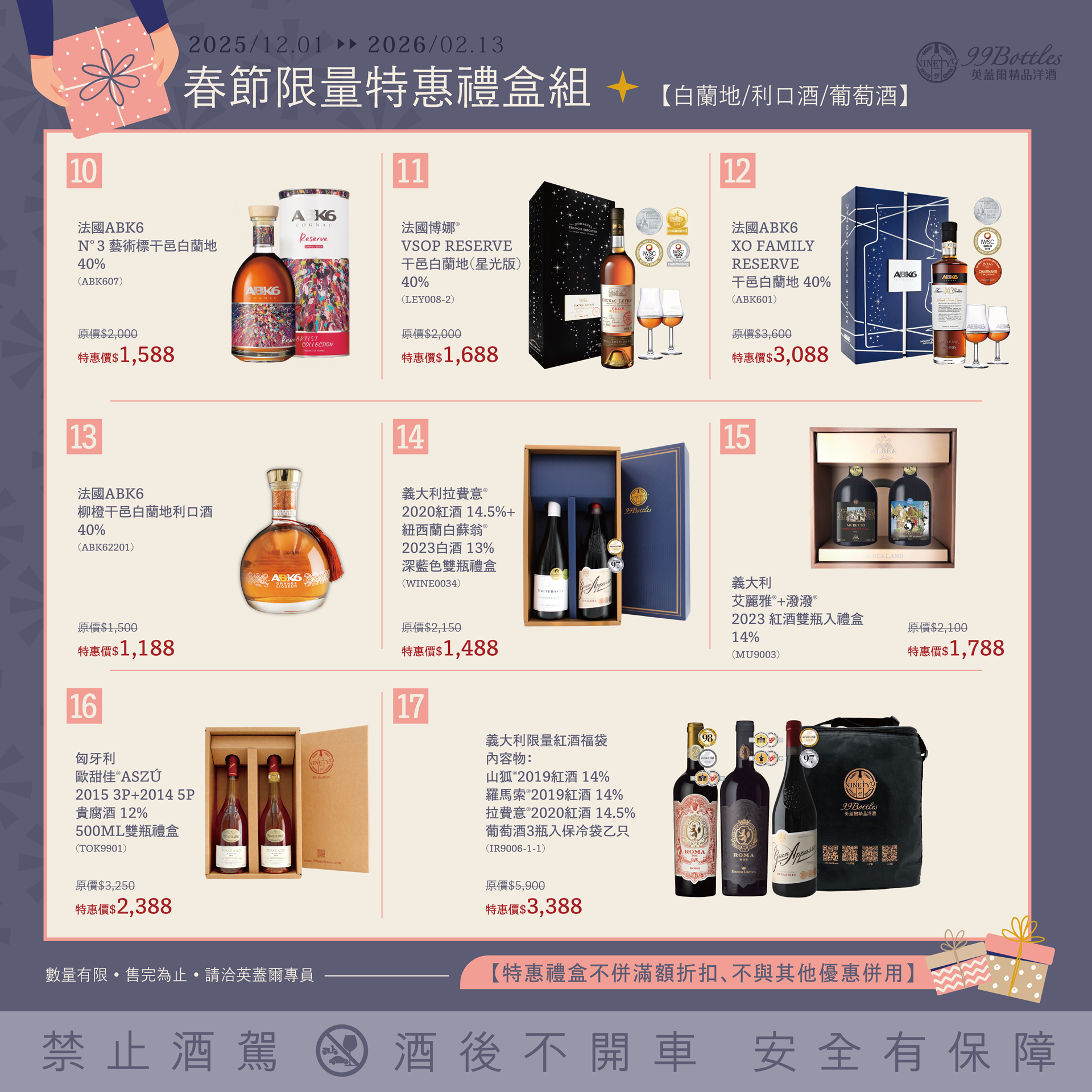 今年新春,英蓋爾精品洋酒邀您以精選酒禮,為團聚時刻增添儀式感與祝福。精美禮盒不僅適合送禮,也能與家人好友一同共享佳節美好時光。