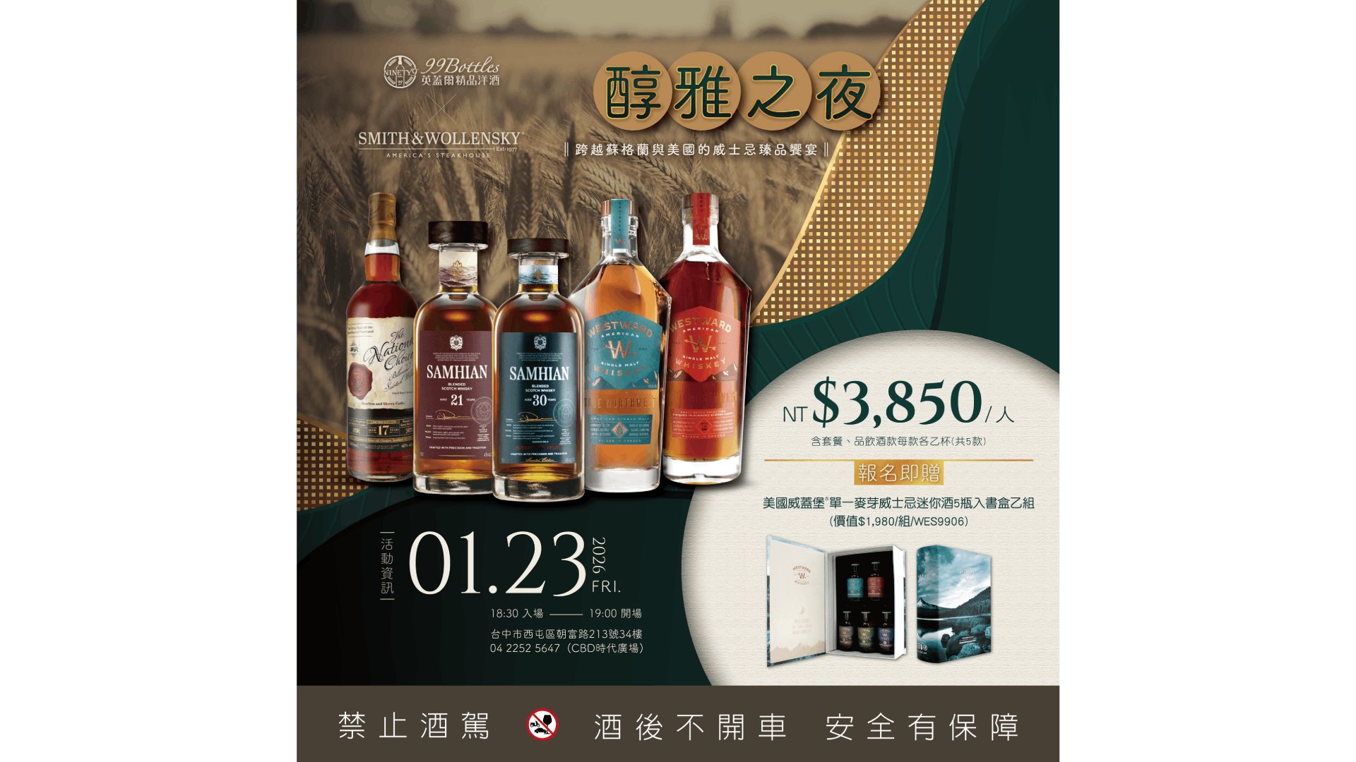 英蓋爾精品洋酒攜手享譽國際的美式經典牛排館 Smith & Wollensky,舉辦【醇雅之夜餐酒會】,邀請品味人士共度一場跨越蘇格蘭與美國威士忌的極致饗宴。活動以「五款頂級威士忌,搭配精緻套餐」為主題,呈現餐酒的完美對話,打造沉浸式高端味覺體驗。
