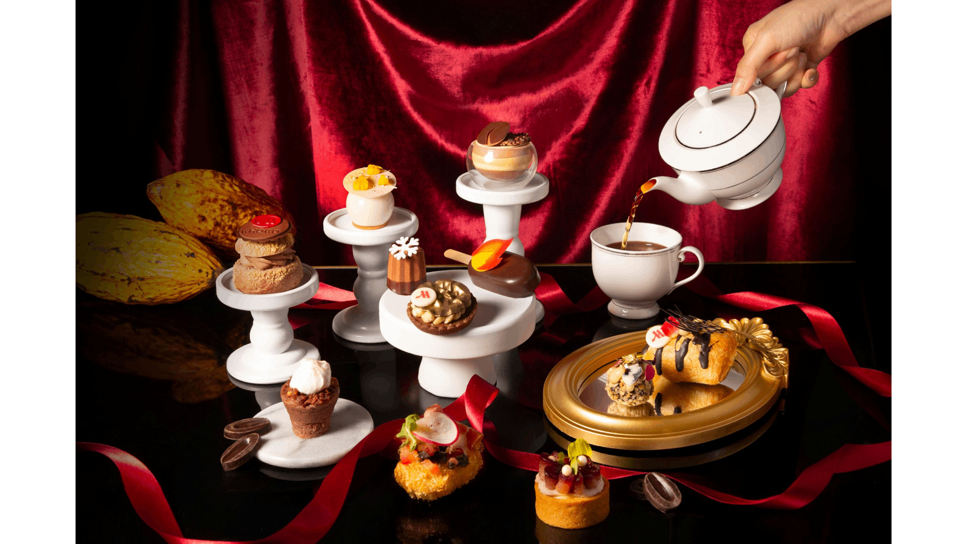 鹹點設計亦融入巧克力元素,為味蕾帶來平衡與驚喜。將舒肥雞胸搭配紅酒漬西洋梨,並以白巧克力球點綴的「紅酒西洋梨雞肉鹹塔」。或是在酥炸香蕉脆片疊上鹹香拜庸生火腿、番茄及澳洲塔斯馬尼亞橄欖的「法國拜庸生火腿橄欖香蕉餅」。還有將日式咖哩與苦甜黑巧克力融合,搭配炙燒美國牛肉捲與香濃起司的「巧克力咖哩牛肉酥」。以及將細膩鴨肝慕斯裹上黑巧克力與杏仁碎,口感奢華的「黃金巧克力鴨肝醬球」。午後時光適合放慢步調,走進灑滿陽光、挑高九米九的舒適空間,與摯友或戀人共享值得珍藏的美好片刻,享受閒適午茶時光。