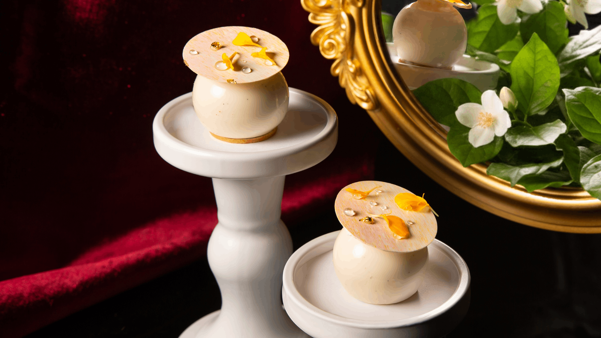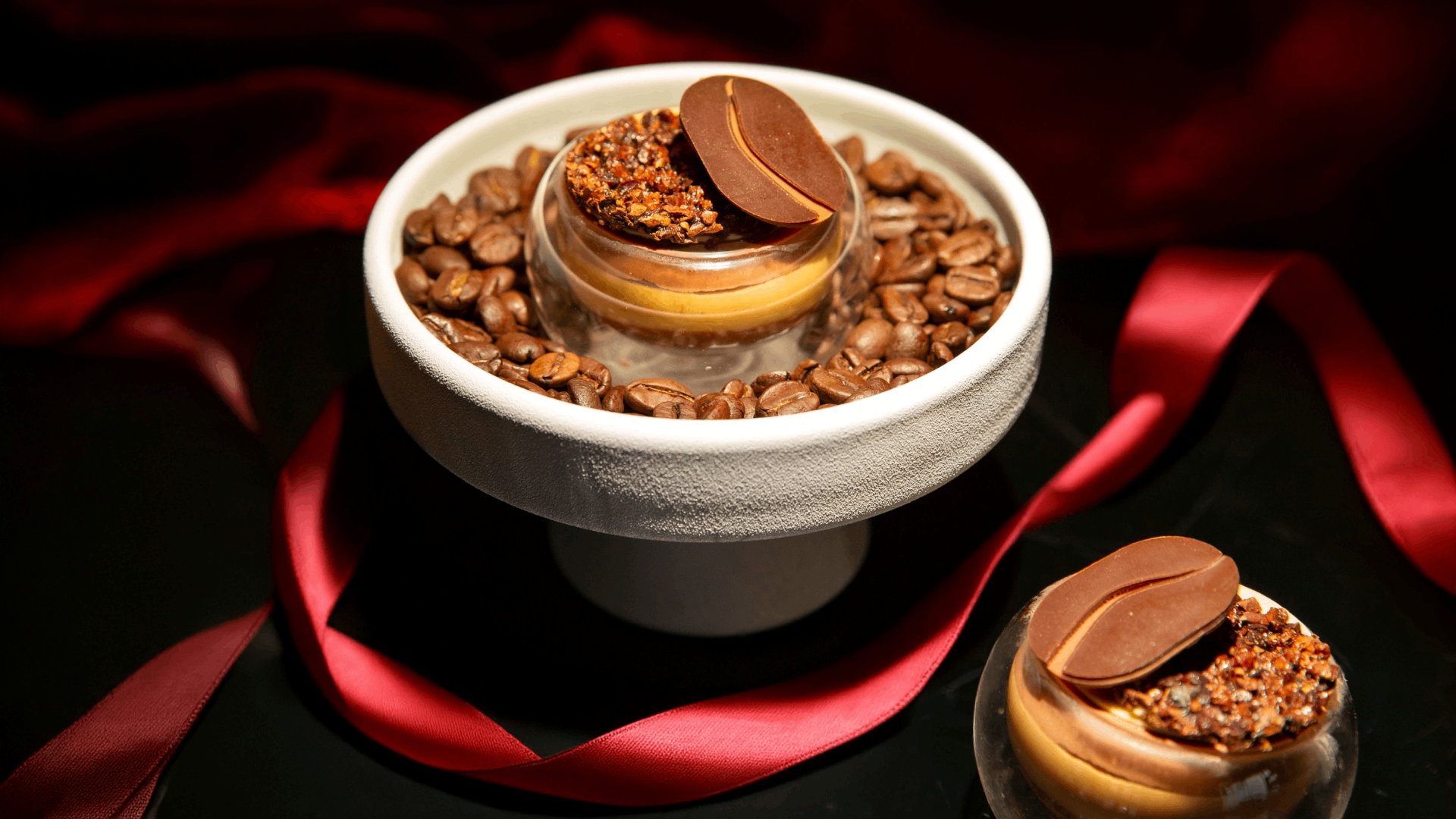 巧克力風味與可可成分含量息息相關,可可成分佔比越高,風味越是濃醇微苦。台北萬豪酒店點心房主廚曾仕斌自幼著迷於巧克力的多樣可塑性,此次精選 12 款來自不同產地、可可濃度橫跨 33% 至 85% 的巧克力,將對巧克力的熱愛轉化為創作巧思,打造風味獨特、層次分明的午茶甜點,為味蕾帶來無限驚喜。「茉莉白桃柚子白巧克力慕斯」底層是杏仁蜂蜜蛋糕與巧克力脆片,堆疊清甜白桃果泥凍與帶有果香風味柚子奇想巧克力奶醬。外層包覆融入茉莉花香的33%歐帕麗絲白巧克力慕斯,質感細膩。「西西里咖啡巧克力慕斯杯」是主廚對西西里咖啡的致敬之作。杯底是66%加勒比巧克力咖啡奶油醬,來自加勒比海的可可豆,自帶杏仁與烘烤堅果香氣。中層夾入酸甜的檸檬與柑橘奶油餡,平衡濃郁風味。頂層覆上帶有清新柑橘與果乾芬芳的64%塔諾里巧克力慕斯,並以黑胡椒可可脆片及咖啡豆造型巧克力點綴 。