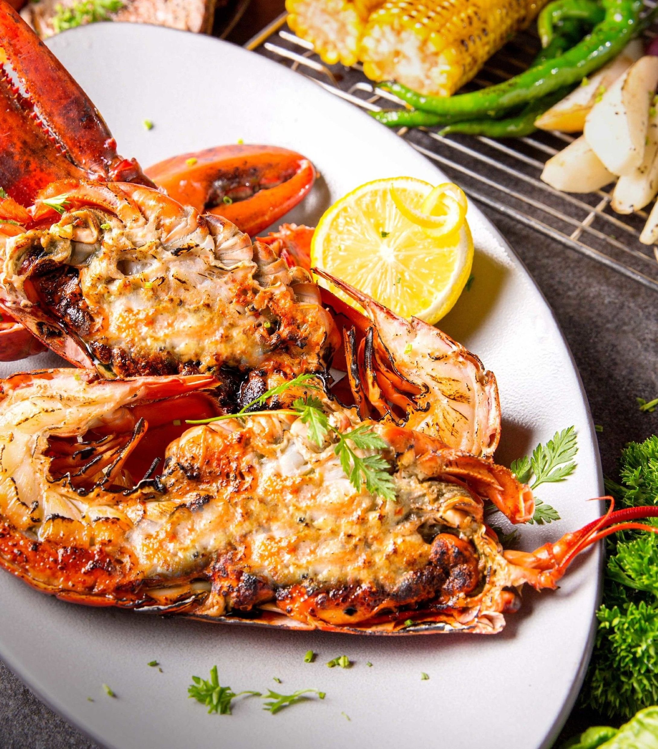 圖2. 台北萬豪酒店Garden Kitchen,午間自助美饌可選擇五大主題區自助美饌,或加價搭配海鮮、頂級牛排與各式肉食等主餐,搭配精緻自助吧吃到飽。圖為主餐爐烤松露醬奶油龍蝦