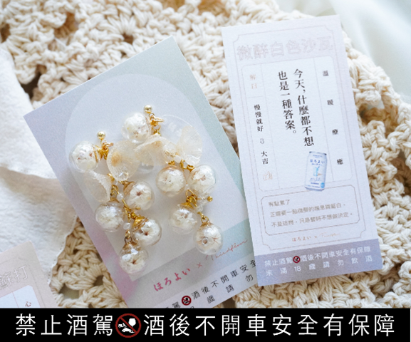 此次聯名以「草莓蘇打」、「白葡萄」、「葡萄沙瓦」、「白色沙瓦」四款 Horoyoi 微醉經典風味為主題,打造專屬限量耳飾設計,並結合愛情籤詩與現場客製化體驗,邀請消費者為自己留下獨一無二的 Horoyoi Moment(微醉時刻)。不只是一次跨界創作,更是將 Horoyoi 微醉的氣泡感受,延伸為可配戴的生活美學,讓微醉不只停留在味覺,而成為風格與日常中的溫柔存在,為春日注入一抹輕盈而詩意的想像,把那一刻微醉,留在春天,開啟屬於自己的搖曳時刻。