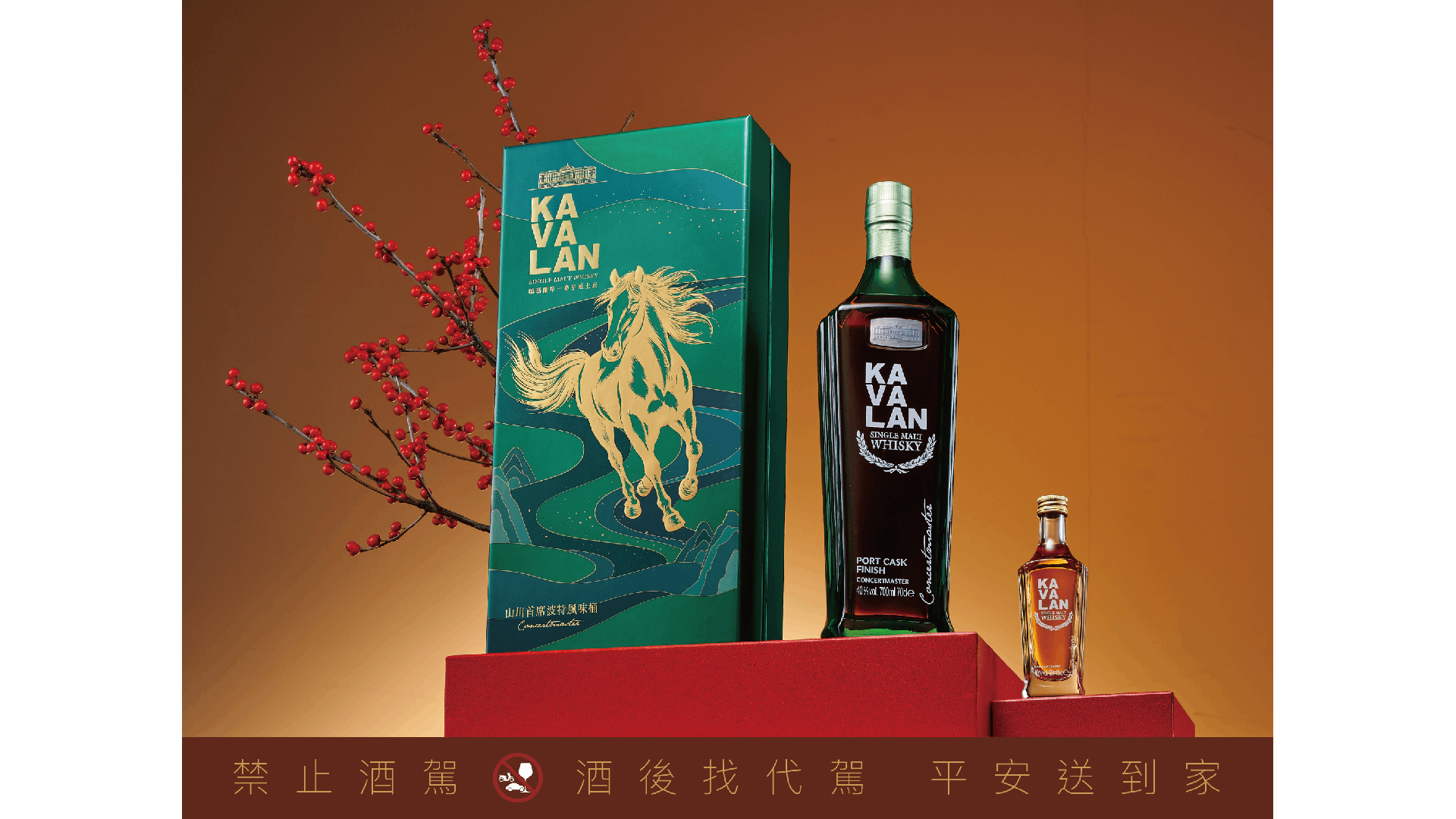 農曆新年即將迎來馬年,「馬」象徵著勇毅無畏、開創卓越,是東方文化裡進取力量的化身,寓意著新年邁步迎向更高境界。以此為靈感,噶瑪蘭威士忌將祥瑞寓意與精湛工藝巧妙結合,推出2026「金馬奔騰」年度禮盒。該系列囊括「噶瑪蘭山川首席波特風味桶單一麥芽威士忌」、「噶瑪蘭層豐雪莉3桶單一麥芽威士忌」及「噶瑪蘭經典獨奏Vinho葡萄酒桶威士忌原酒單一麥芽威士忌」,三款禮盒售價分別為NT$1,700、NT$2,500及 NT$3,700,並搭配噶瑪蘭50ml輕巧小酒,為品味之選增添了收藏價值,即日起於全台噶瑪蘭展售中心、噶瑪蘭酒堡門市、指定菸酒專賣店、家樂福及愛買等通路販售,全聯、大全聯陸續上架中。