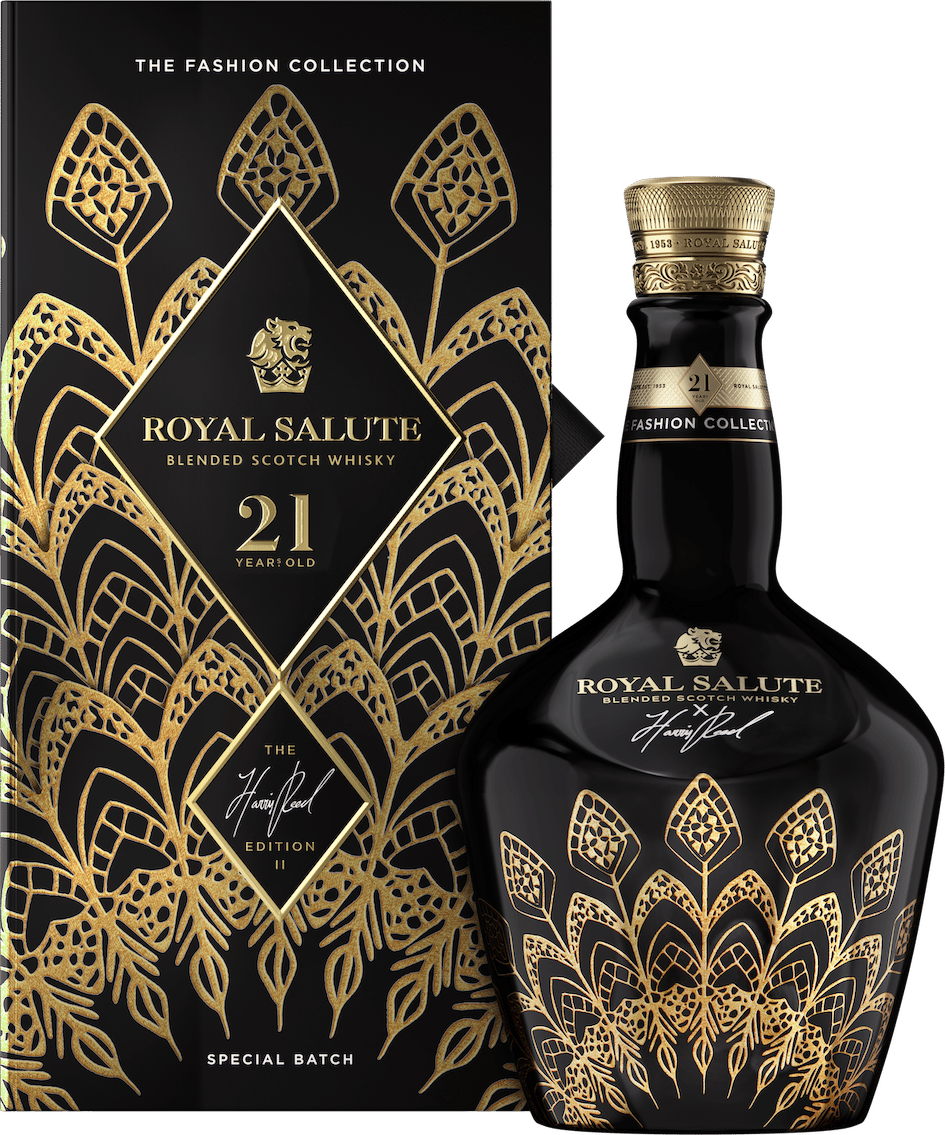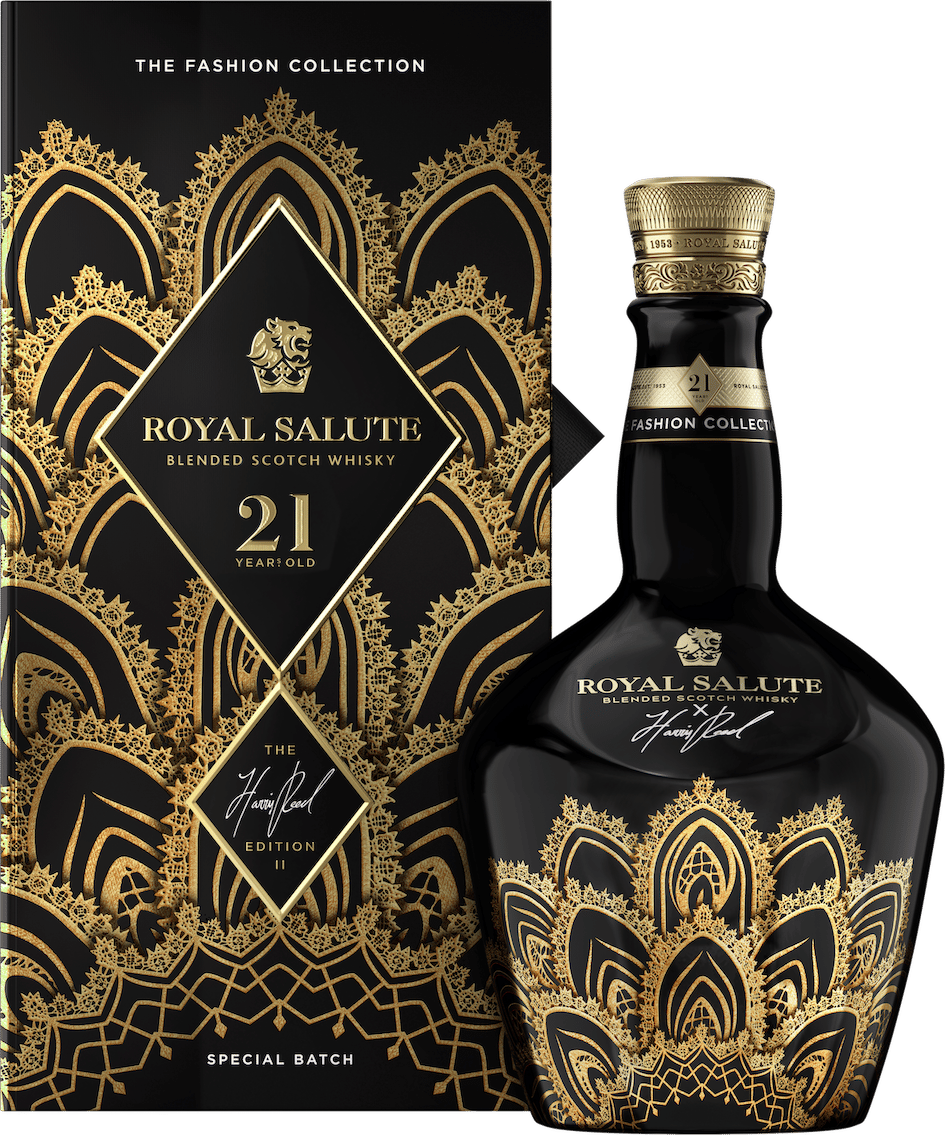 皇家禮炮誕生於 1953 年,為慶祝英國女王伊莉莎白二世加冕而生,並自此專注於打造 21 年以上高年份珍稀酒款,奠定其「威士忌之王」的美譽。承襲與英國皇室深厚而悠久的淵源,皇家禮炮以「王冠」作為創作靈感,推出全新皇家禮炮 21 年王者之冠限定版—以「繁盛金冠」與「鋒芒金冠」兩款經典皇冠輪廓為設計基礎,融入當代美學語彙,向在各自領域中有所成就、登上王者之巔的新奢世代致敬。酒款承載的不僅是皇室傳承,更是一種屬於當代新奢人士的王者品味。