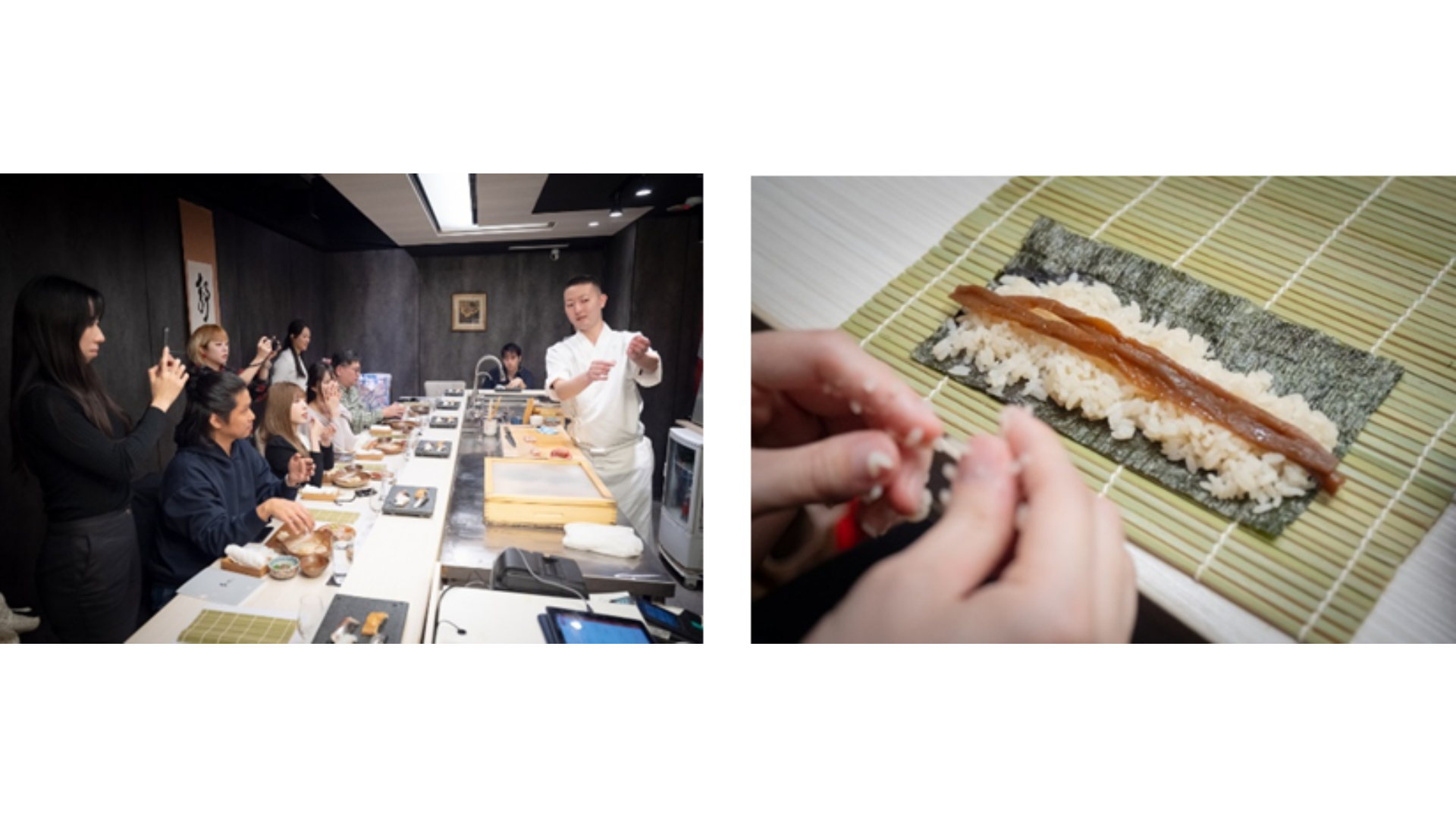 本活動由日本地酒協會主辦、友士(股)公司協力支持,攜手SUSHI GARYU與台北壽司料理店鮨小谷共同策劃。首先介紹江戶前壽司在食材處理與保存智慧,現場由壽司職人示範經典作法,包括醋締、昆布締與煮物等,讓大家在品嚐的同時,理解每一道壽司背後的文化底蘊。後半段安排握壽司與干瓢卷體驗,透過親手操作,感受職人示範中的細膩技巧。
