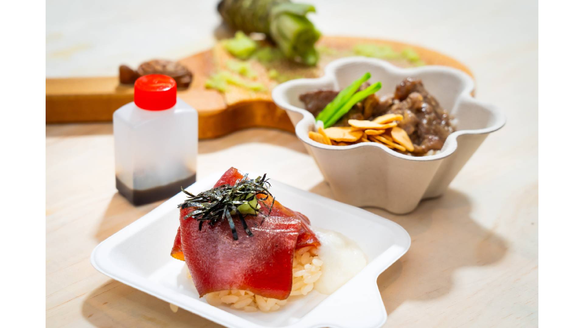 除了頂級佳釀,餐點陣容同樣驚人。蟬聯多年米其林一星的「吉兆割烹壽司」首度挑戰戶外快閃,主廚許文杰特別設計三款精緻小食:「「魚山藥旨味迷你丼」、「炙燒牛小排你 丼」及神級逸品「蔥花魚山山子醬海苔捲」。