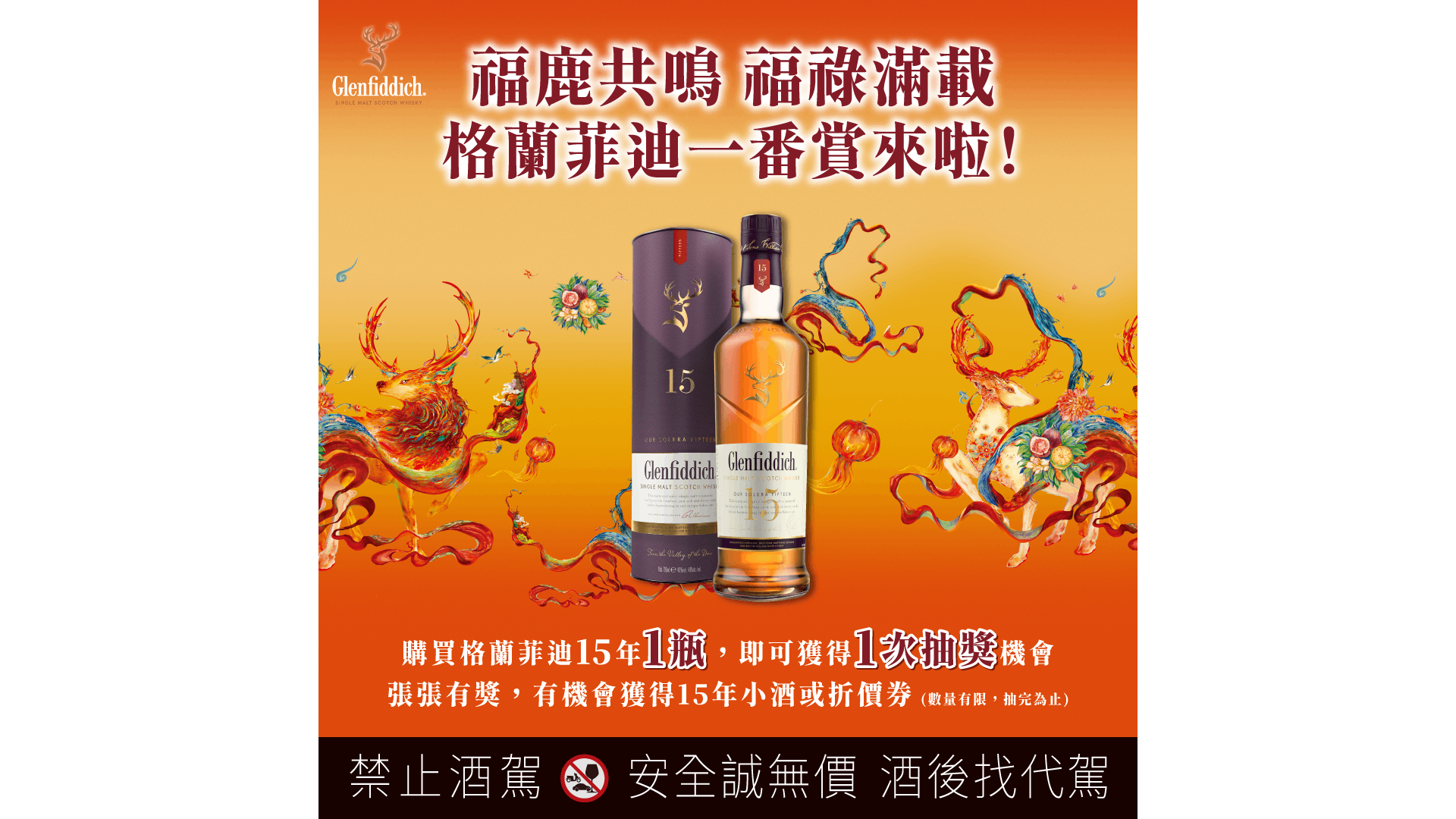 格蘭菲迪15年單一麥芽威士忌,運用獨創的蘇羅拉系統,為酒液增添溫潤的辛香料風味,並散發石楠花蜜與香草軟糖般的濃郁果香,酒體濃郁而圓潤。於2026年1月16日起至2026年2月28日,凡至全台指定合作菸專通路購買格蘭菲迪15年乙瓶即可參加抽獎,張張有獎,為節慶時光增添驚喜與互動樂趣。(數量有限,抽完為止)