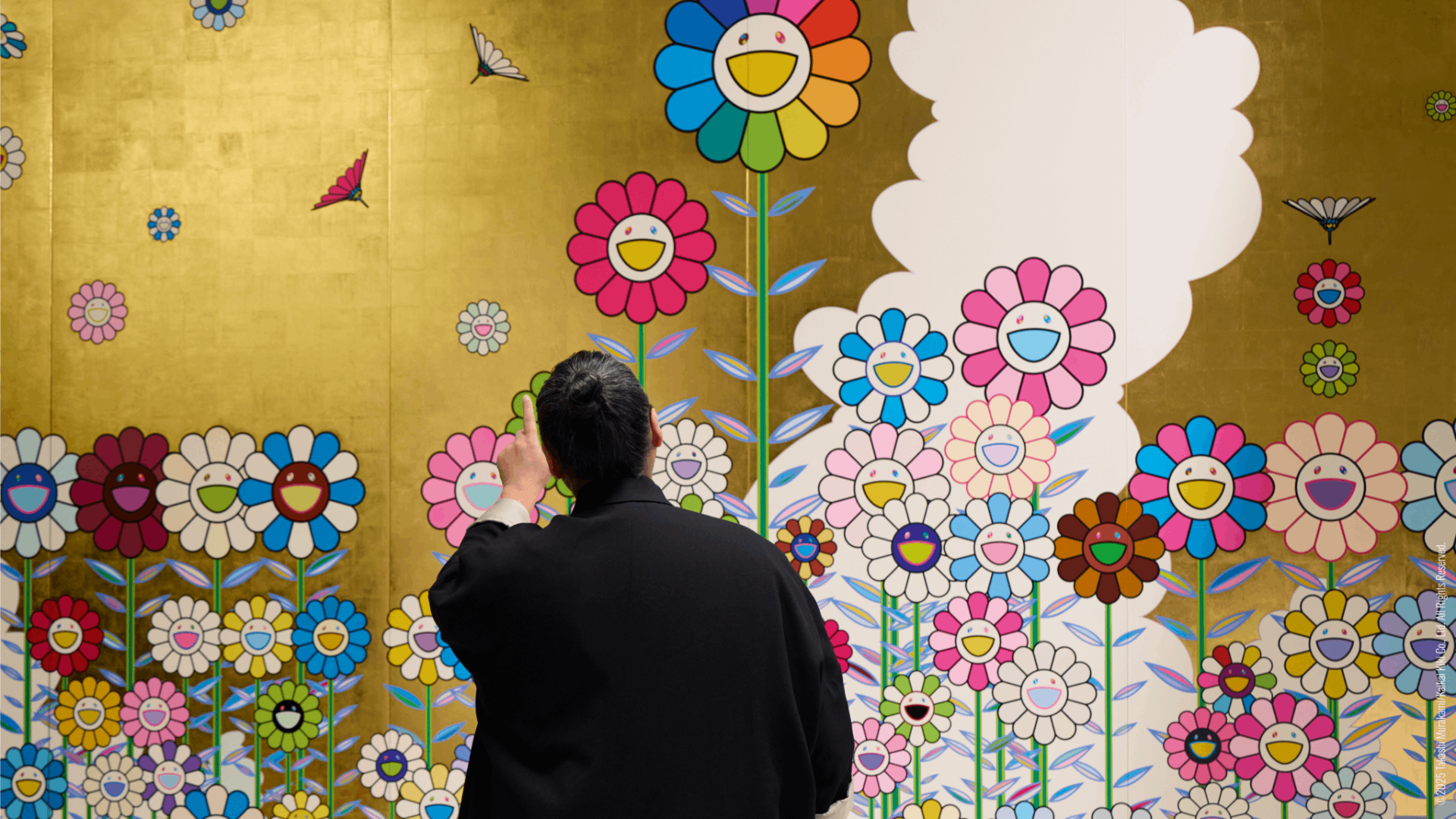 村上隆著名的笑臉花朵背後,隱含著對「被外在形象主導的社會」的深層反思。如同浮世繪所代表的日本藝術傳統,使用極致的平面化手法,並非旨在重現現實,而是透過象徵性的構圖,更深刻地捕捉生活經驗的本質——以暗示取代對視覺幻象的追求。這一美學原則貫穿於村上隆簡約洗練的線條與高度飽和的視覺語彙之中,作品因此蘊含強烈的情感張力,並呈現出既諷刺又矛盾的美感特質。