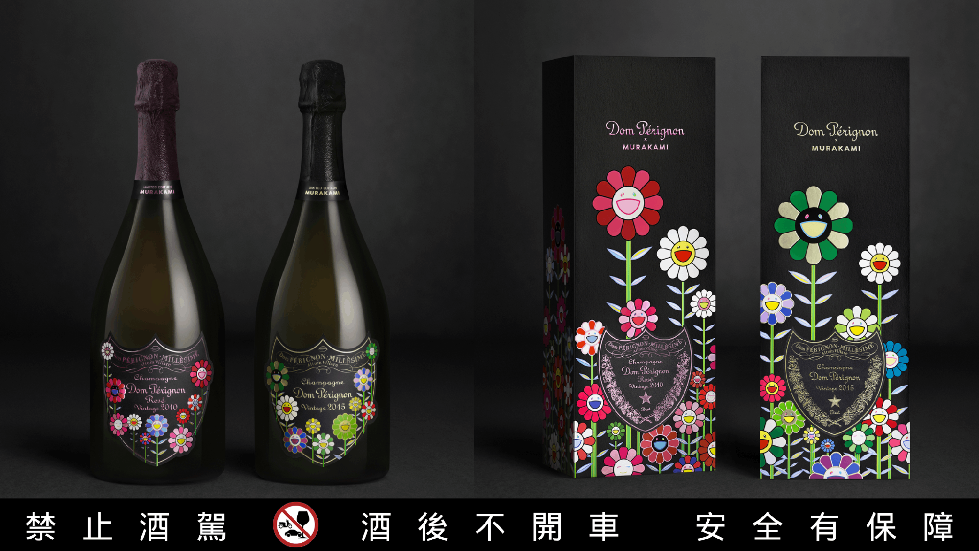 圖說:香檳王 (Dom Pérignon) 與當代藝術家村上隆 (Takashi Murakami) 聯名推出 2015年份香檳與 2010年份粉紅香檳限量版禮盒