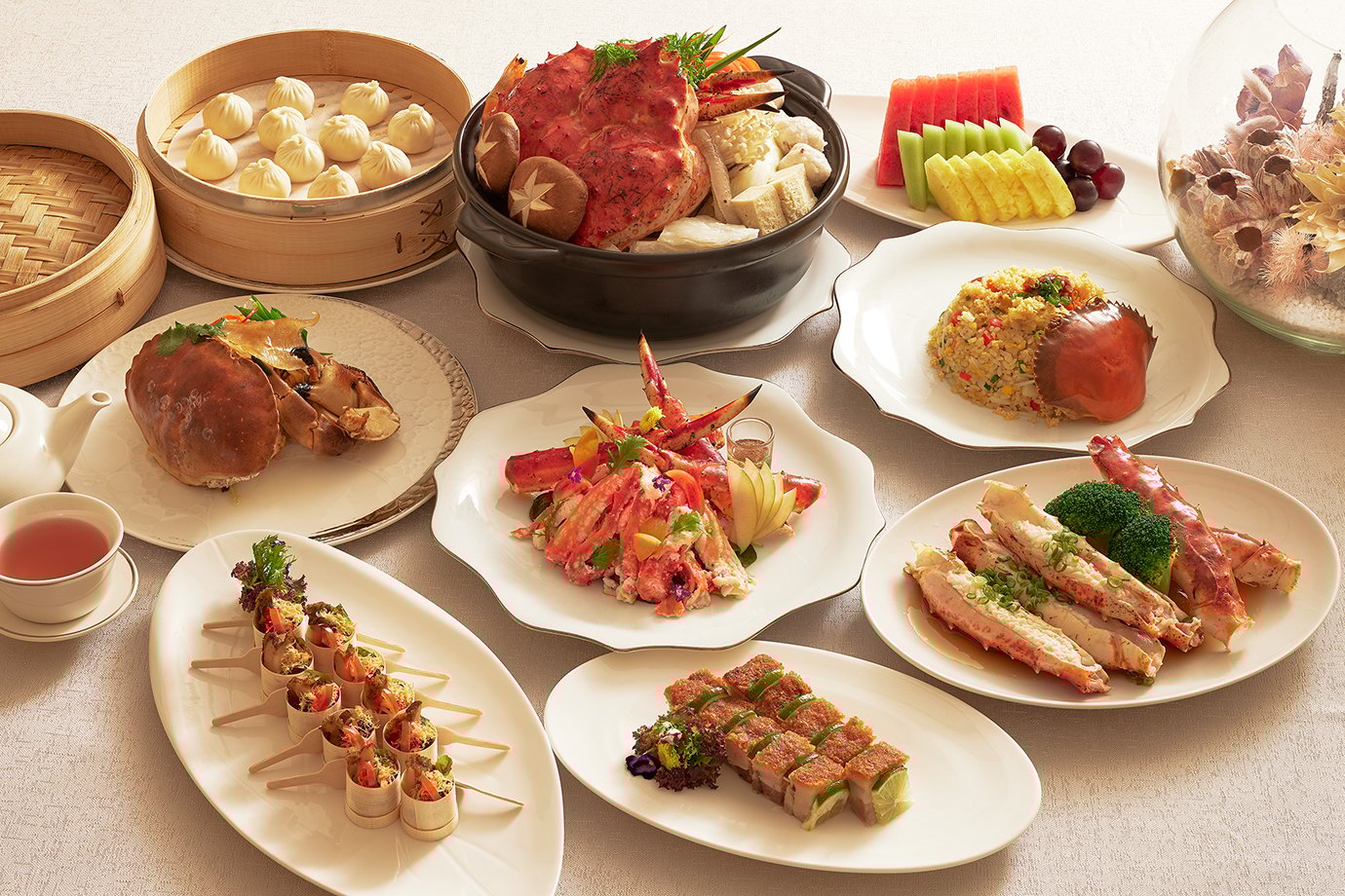 圖說1: JR東日本大飯店台北凱華樓10月1日至11月30日推出「蟹煮隆恩」尊饌饗宴,集結帝王蟹、大閘蟹、紅蟳豪華登場,半桌5人份13,400元,全桌10人份26,800元。(圖/ JR東日本大飯店台北)